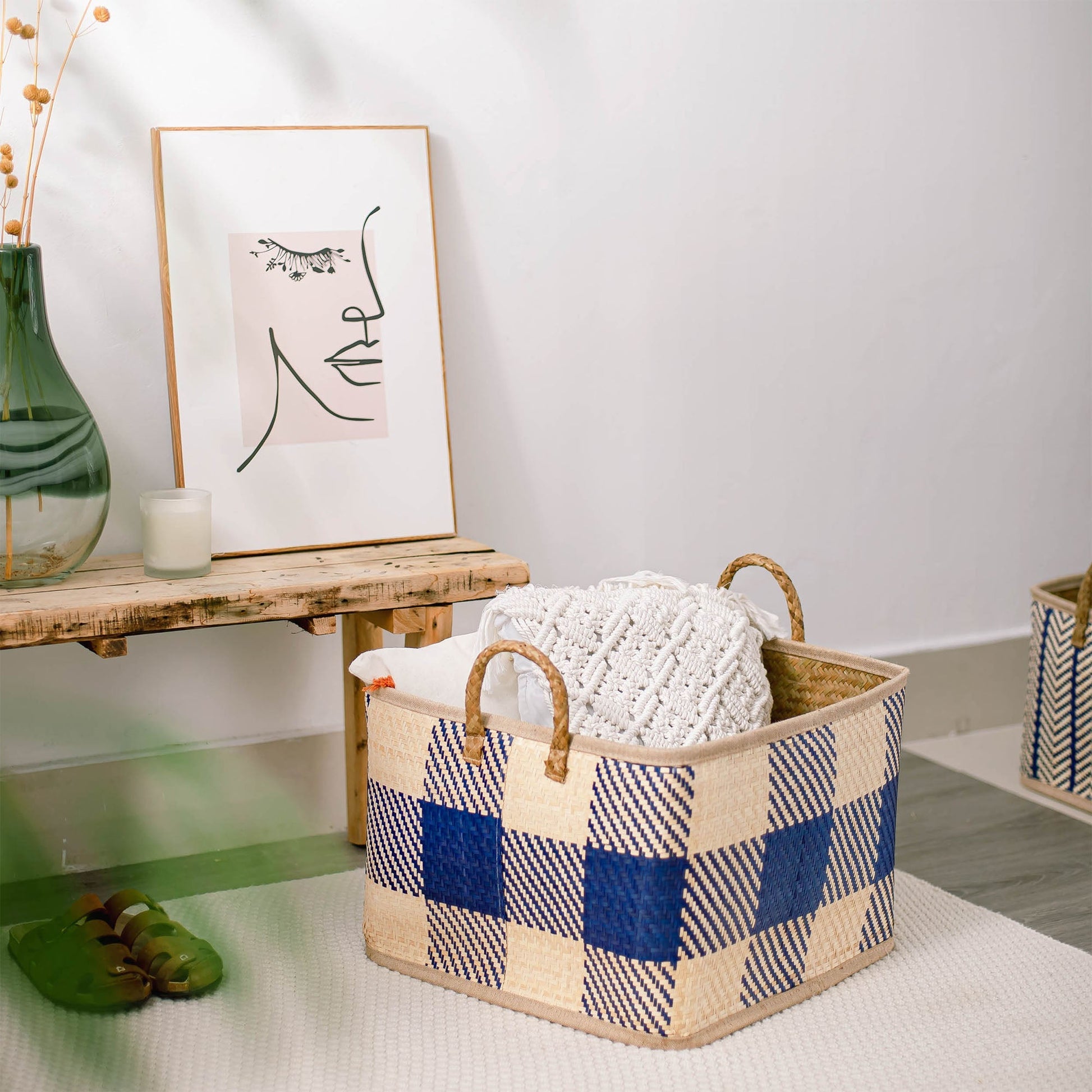 Decorative touch: The eye-catching blue checkered pattern brings personality to your decor, making it a standout piece in any room.