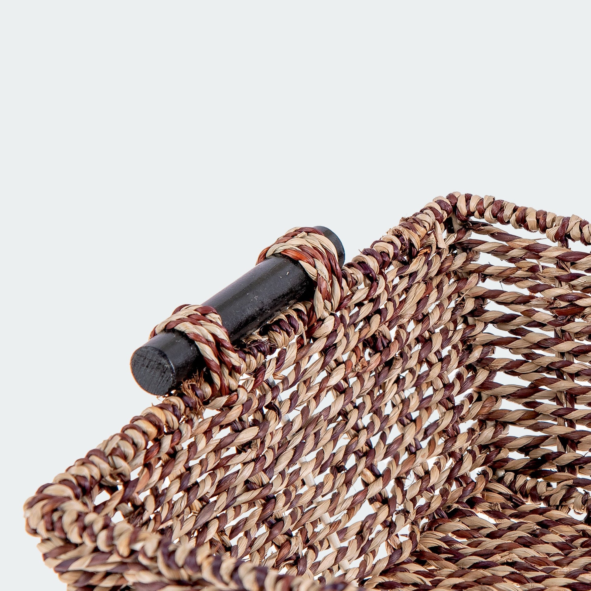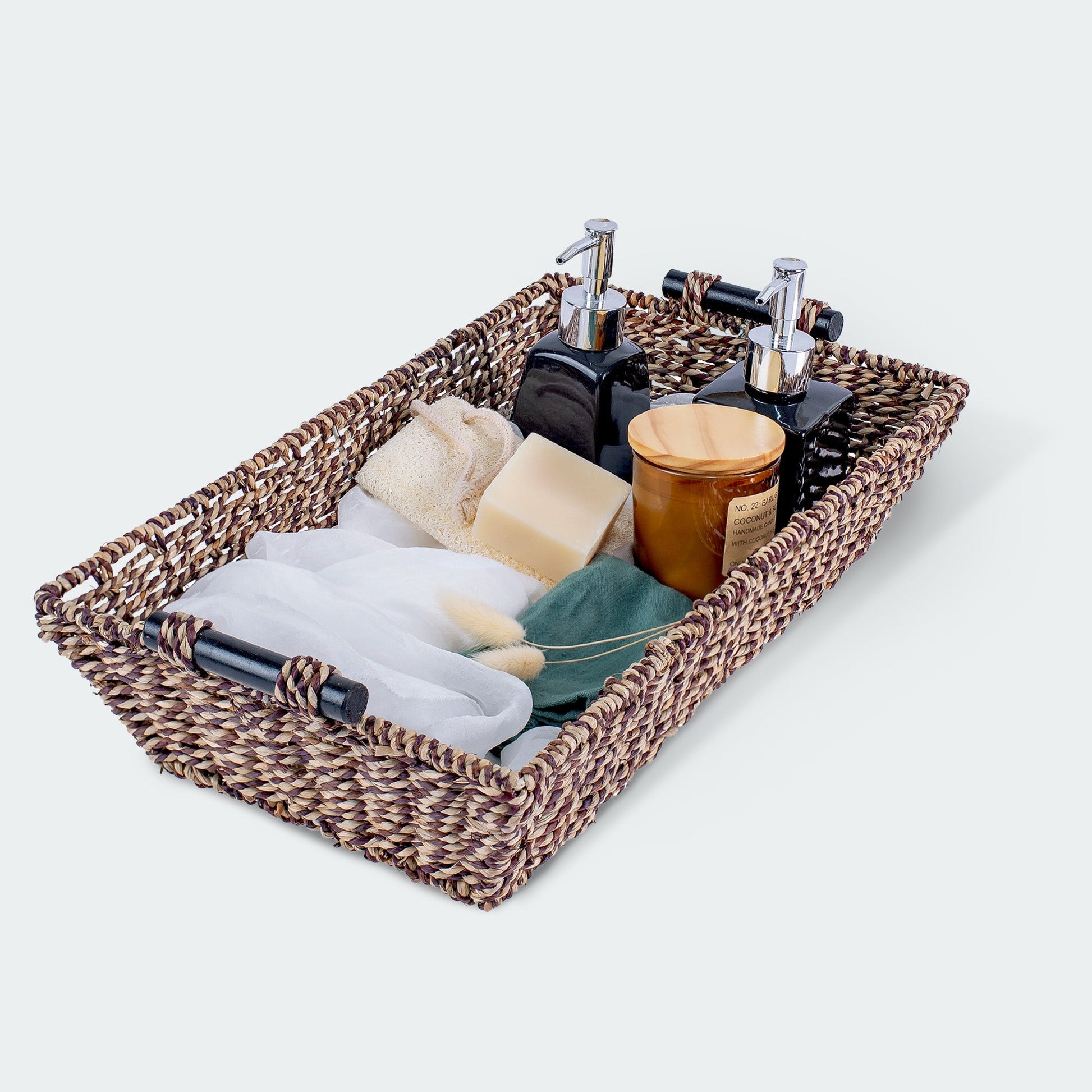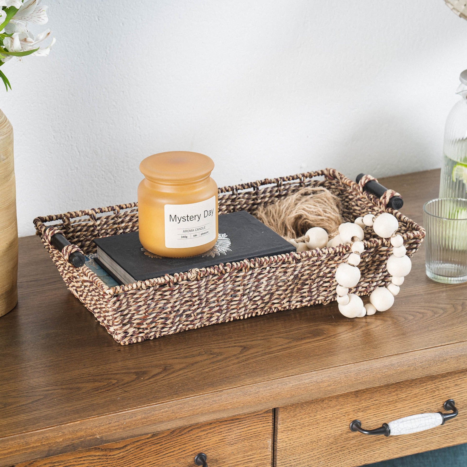 Long Rectangular Seagrass Decorative Basket with Wood Handles