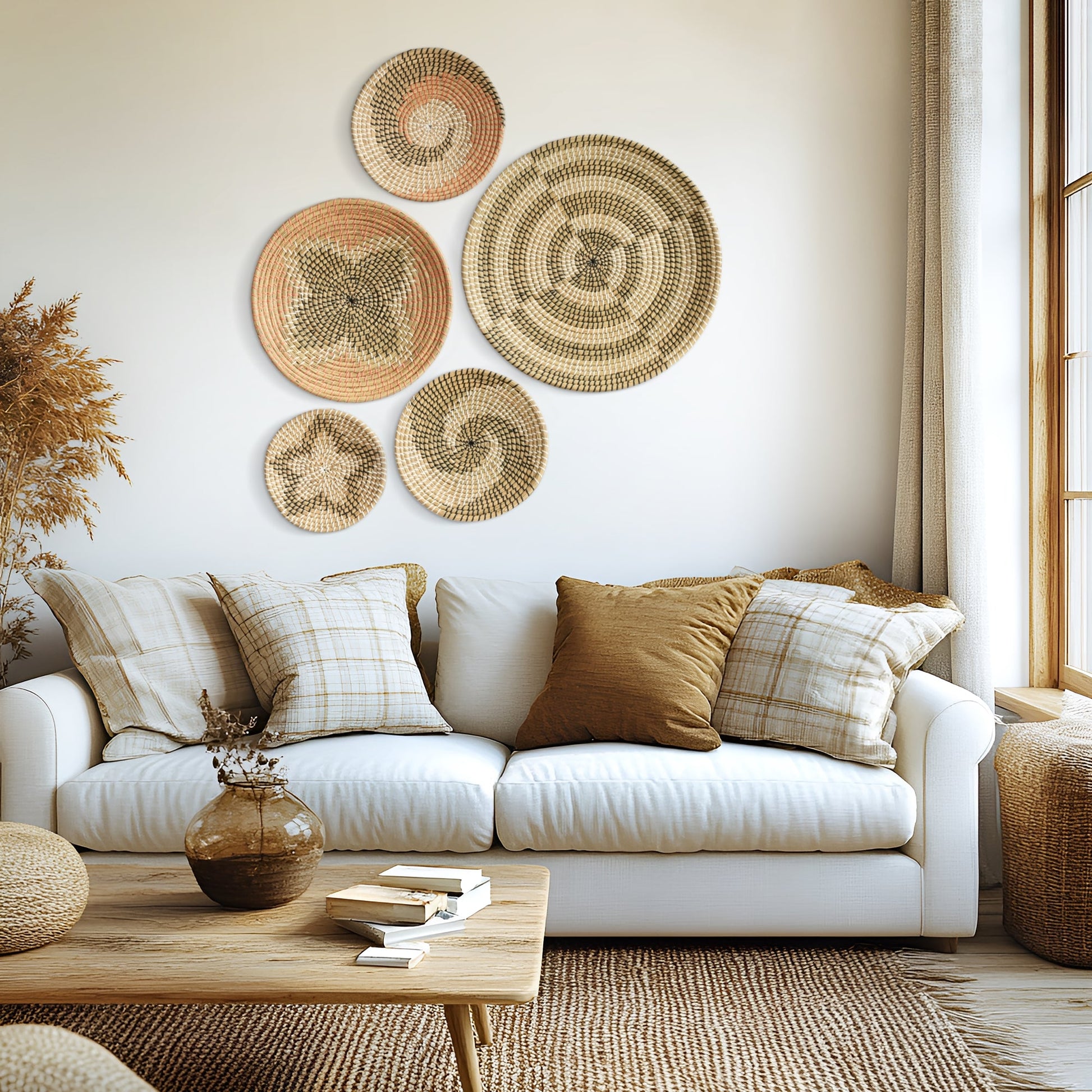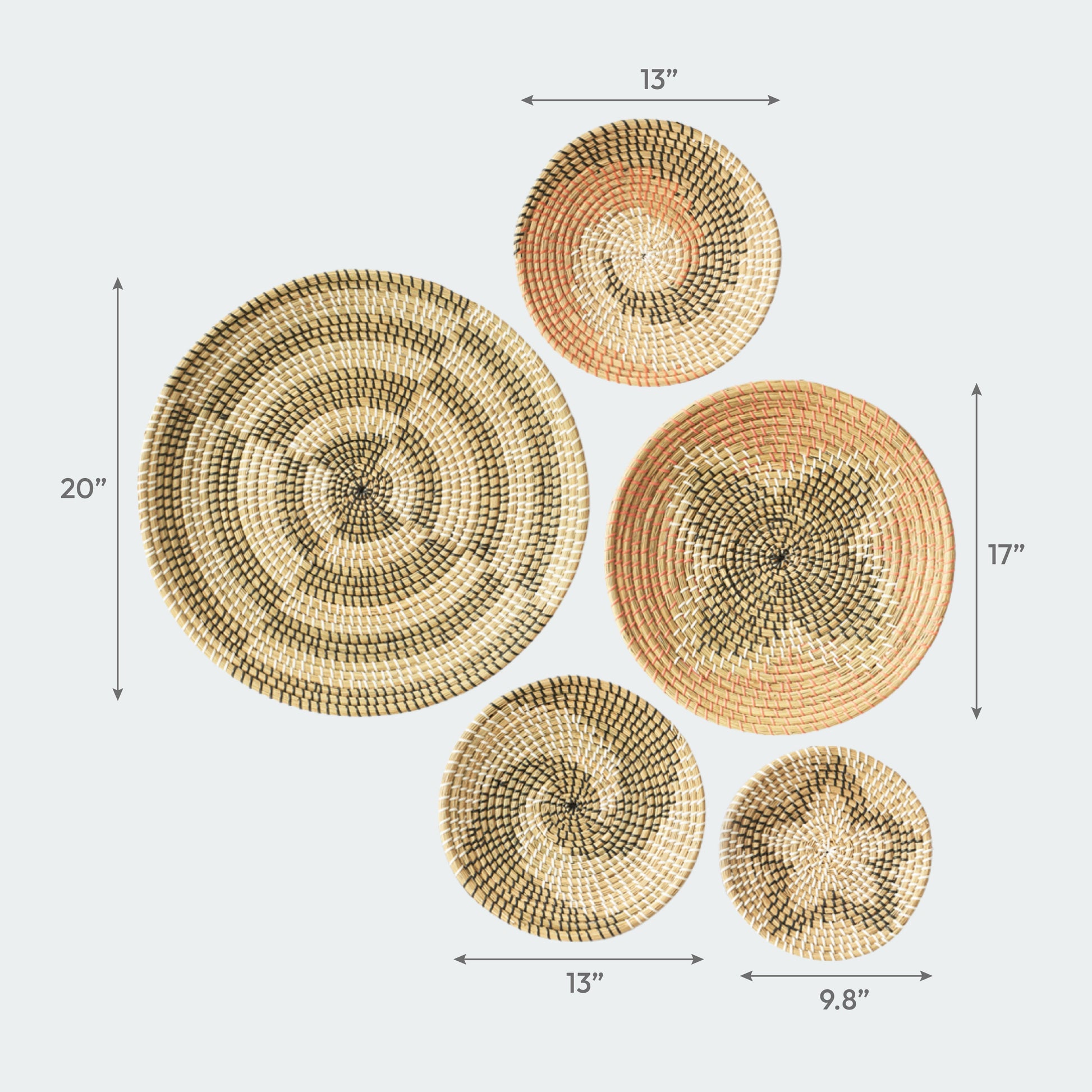 Seagrass Wall Basket Decor Set - Floral and Spiral Designs