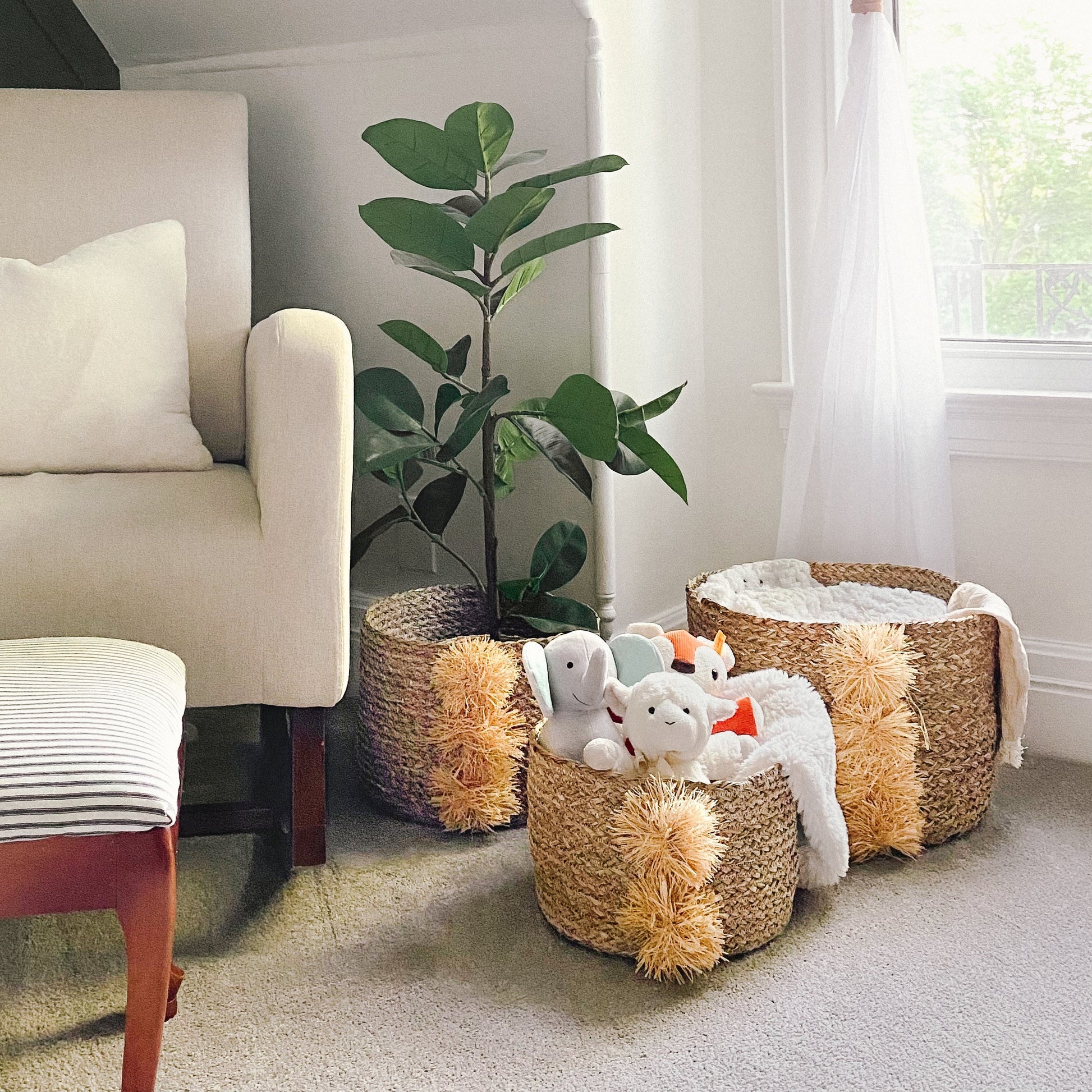 This set of three nesting baskets provides versatile storage options for any room. Use them to store blankets and throws in the living room, organize toys in a child's room, or add a touch of natural beauty to your bathroom. They're also perfect as decorative planters