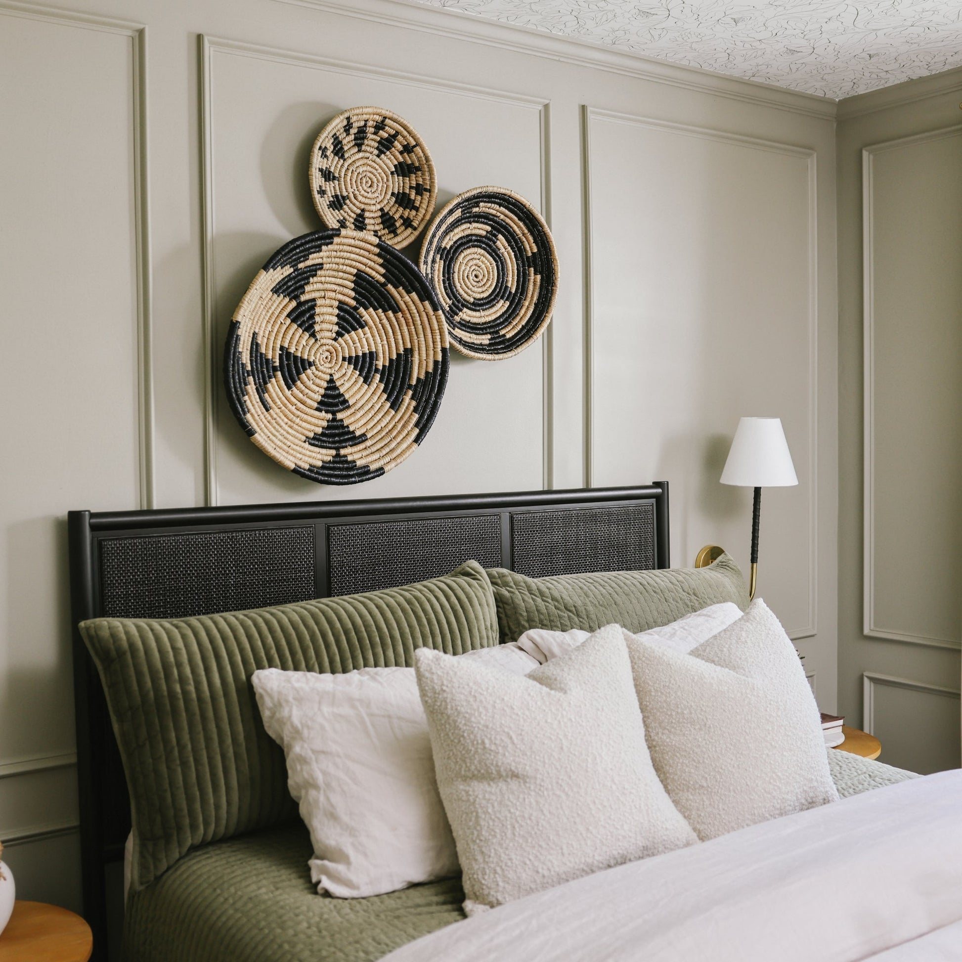 Versatile design: The neutral black and beige tones and classic round shape of this wall basket decor set complement any decor style, from boho chic to modern farmhouse.