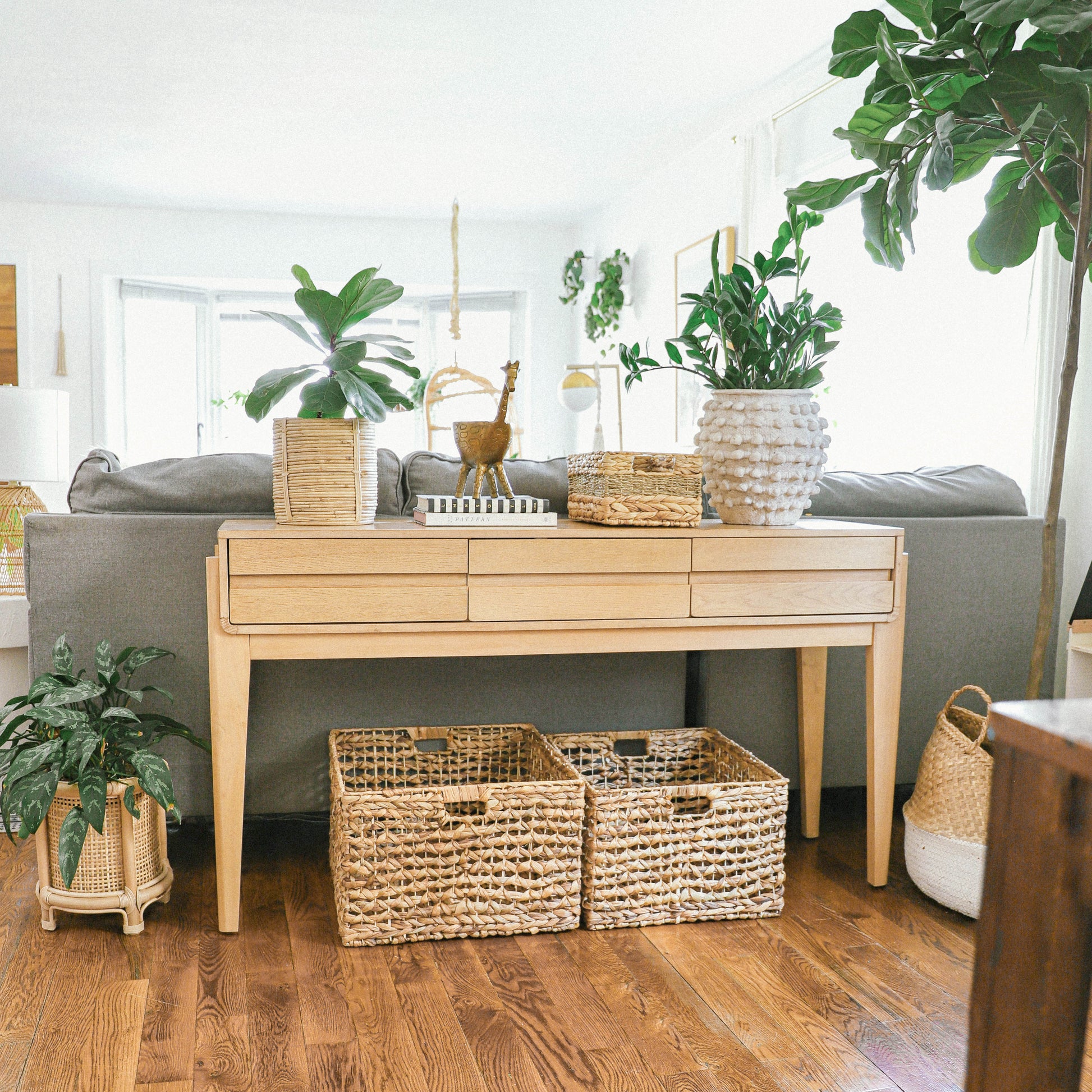 This set of three large baskets is ideal for storing items where visibility or airflow is desired – think blankets, throws, pillows, or even plants. The open weave allows you to see what's inside while adding a unique textural element to your room.