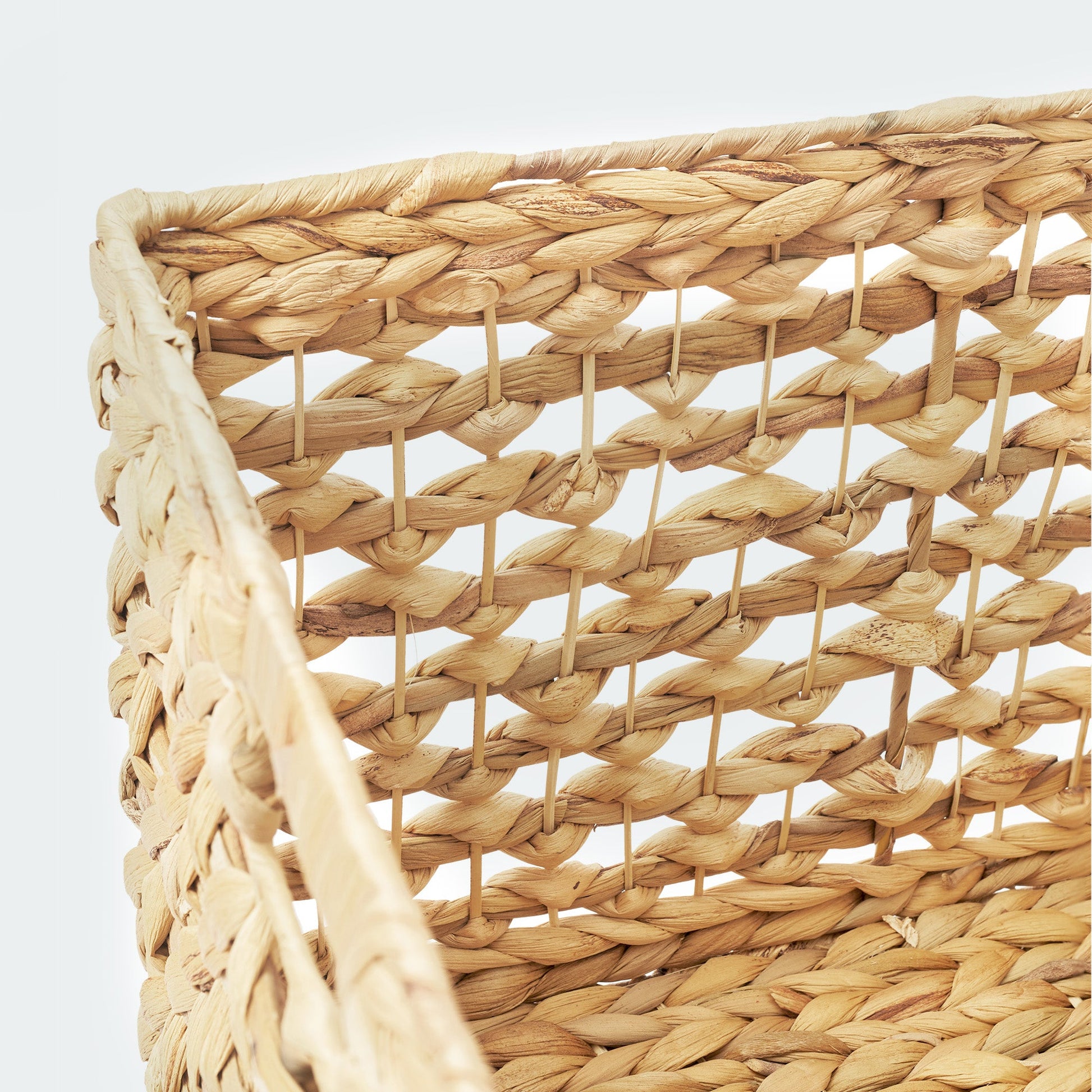 Crafted from sustainably sourced water hyacinth by skilled Vietnamese artisans, each basket showcases the beauty and texture of this eco-friendly material. The distinctive open weave creates a sense of visual lightness, making these baskets perfect for adding storage without making a space feel cluttered or heavy. The clean lines of the cube shape add a contemporary touch, complementing a variety of décor styles. Integrated cutout handles ensure easy portability.