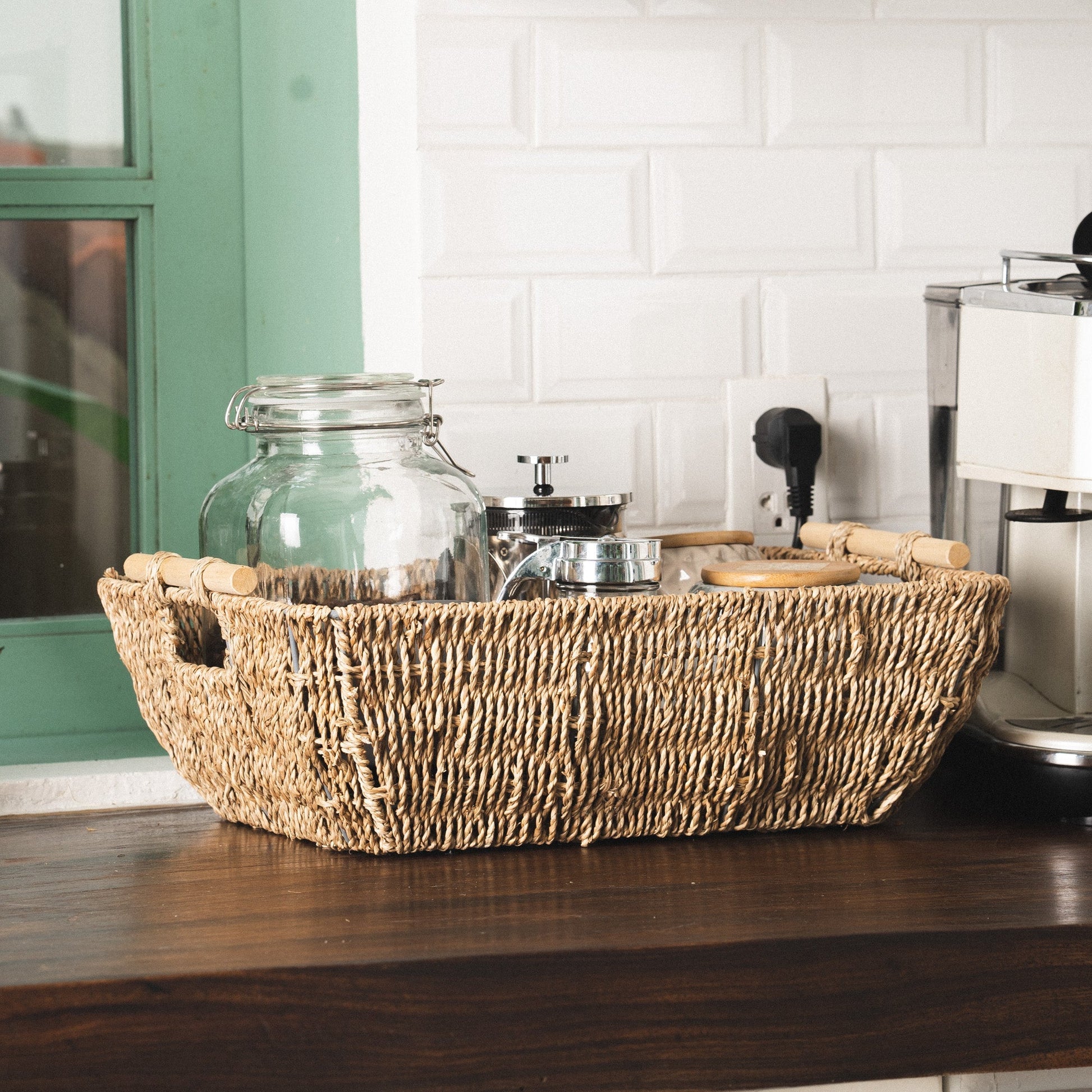 Perfect for organizing larger items: With ample space, this wicker storage basket is ideal for holding everything from a full drinkware set to household essentials.